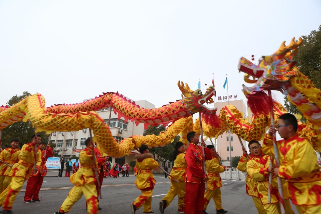 早上七點(diǎn)半,伴隨著陣陣威風(fēng)鑼鼓聲,兩條舞龍?jiān)诘V工業(yè)廣場(chǎng)上翻騰穿梭,上下游動(dòng),象征著淮礦集團(tuán)艱苦創(chuàng)新業(yè),開(kāi)拓爭(zhēng)一流的企業(yè)精神,寓意著該礦干群在新的一年里,將沿著一張藍(lán)圖繪到底,擼起袖子加油干的拼搏精神。