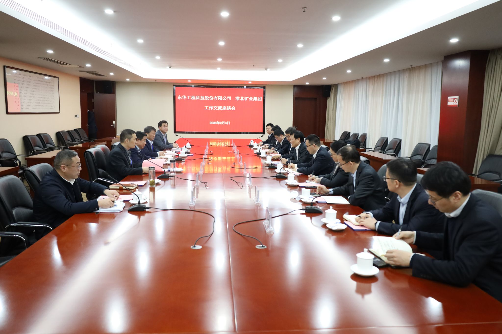 2月3日,淮北礦業(yè)集團(tuán)與東華工程科技公司舉行工作交流座談會(huì)。淮北礦業(yè)集團(tuán)黨委書(shū)記、董事長(zhǎng)、總經(jīng)理孫方,淮北礦業(yè)財(cái)務(wù)總監(jiān)殷召峰;東華工程科技公司黨委書(shū)記、董事長(zhǎng)李立新,黨委副書(shū)記、總經(jīng)理孟陳周,黨委委員、副總經(jīng)理葉平,以及雙方相關(guān)部門(mén)負(fù)責(zé)人參加座談。